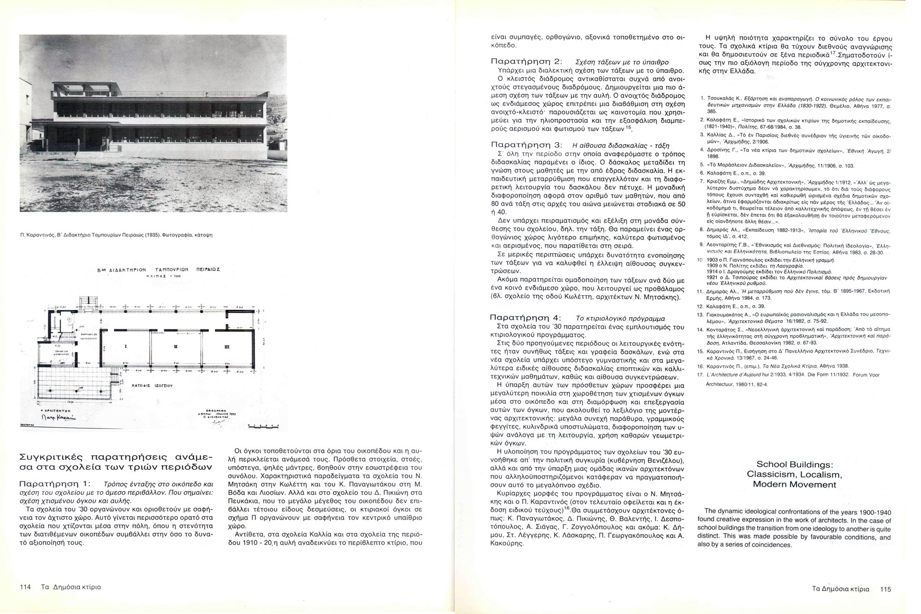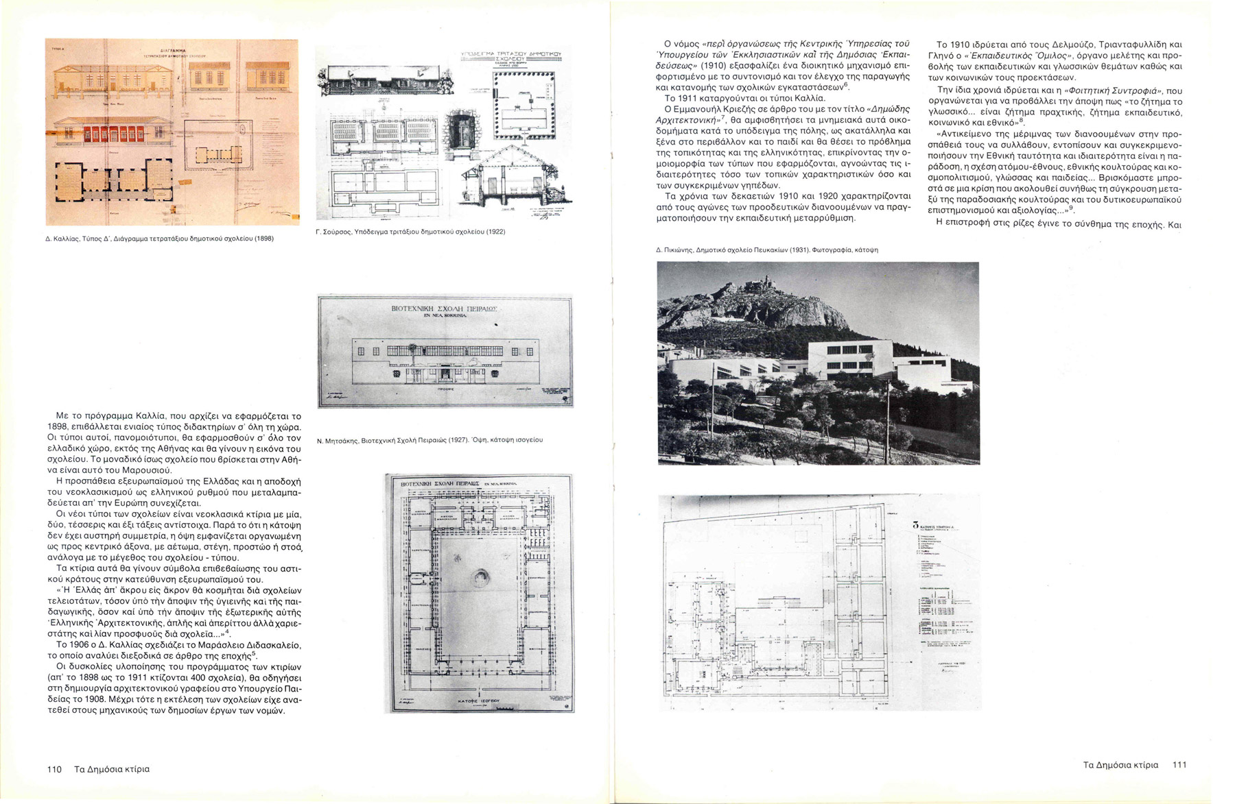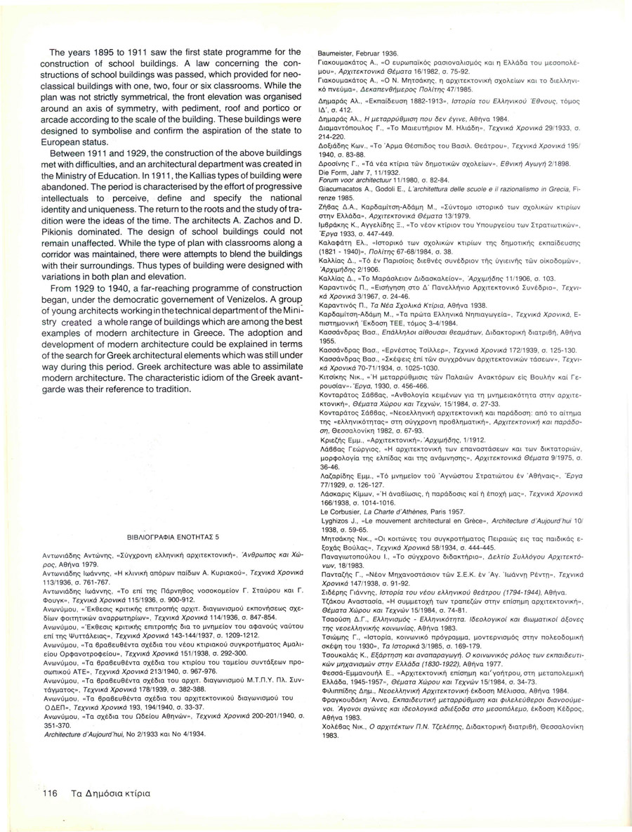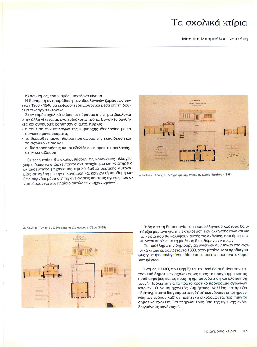 article: The School Βuildings editors: Babalou - Noukaki B. submission: Athens on 20th century, 1900-1940: Athens Hellenic Capital, Μinistry of Culture, 1985, p. 109 -116